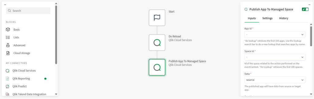今回は、Qlik Automateを使い開発環境のアプリの本番環境への公開の自動化を記載しようと思います。 アプリサイズが大きく、開発環境・本番環境の両方でリロードをまわすと容量的に厳しい場合に、この自動化を導入しています。 開発環境と本番環境でスペー... -