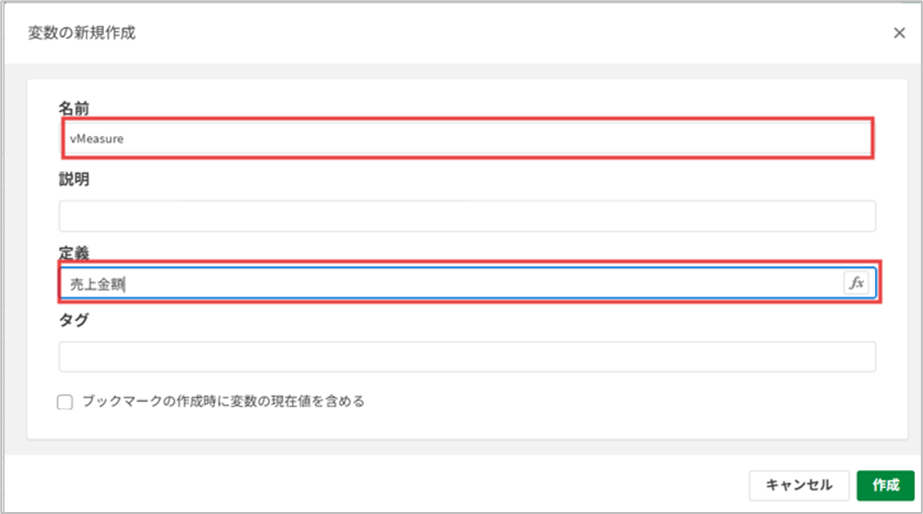 手順② Qlikの変数作成(マスターアイテムと同じ名前で作成)