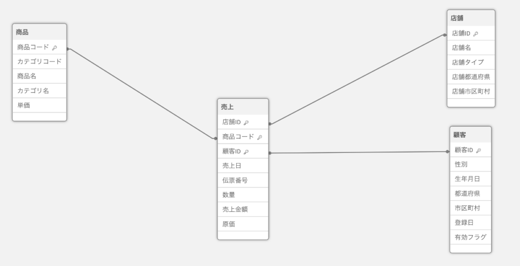 特に何も加工しなくても、テーブル間の関連付けができるようにしてあります。