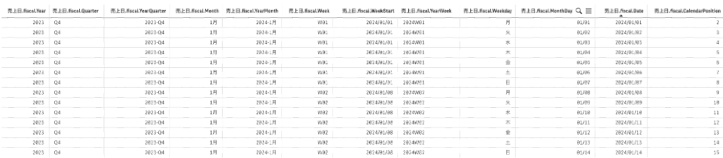 同じ派生項目が二度出てくるのは、Auto Calendarで[fiscal]と[calendar]の2つのカレンダーを定義したためです。最初に出てくるのが fiscalですね。