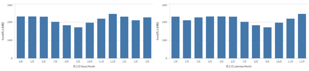 2つのカレンダーで棒チャートを作成し、月の並びを見てみましょう。