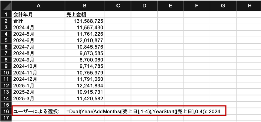 and GetSelectedCount([売上日.fiscal.Year])+GetSelectedCount([売上日.fiscal.Month])+GetSelectedCount([売上日.fiscal.YearMonth]) > 0,