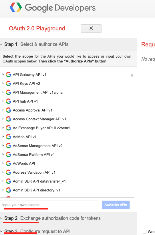 2.「Step 2」で「Exchange authorization code for tokens」クリック