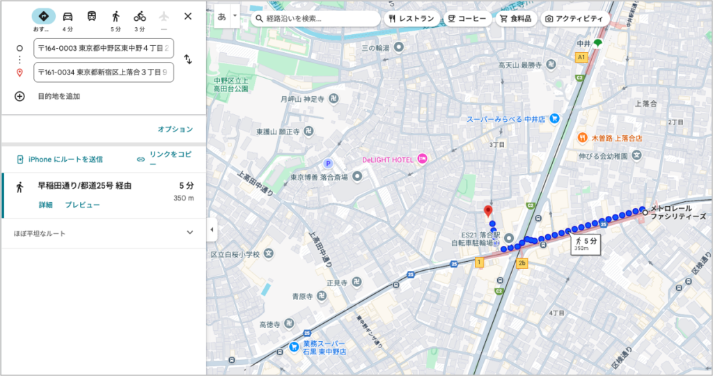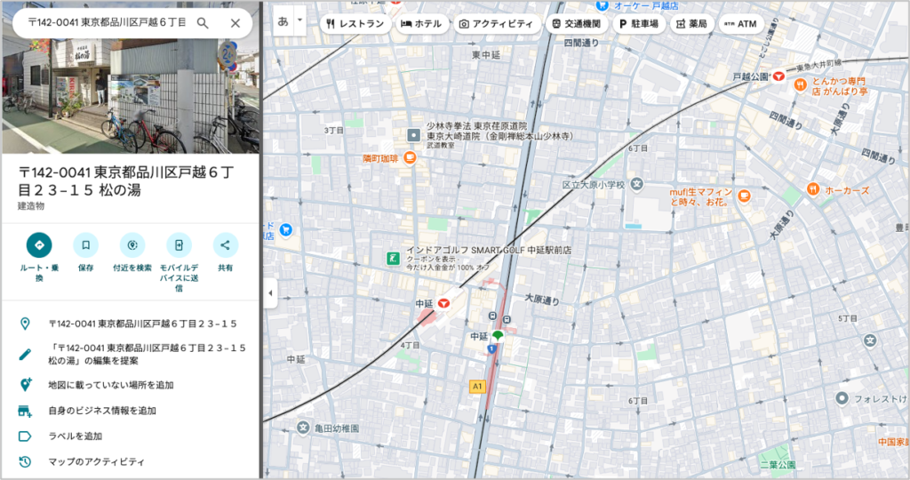 これで、銭湯に行くルートをGoogleマップで詳細を表示しながら確認することができますね!