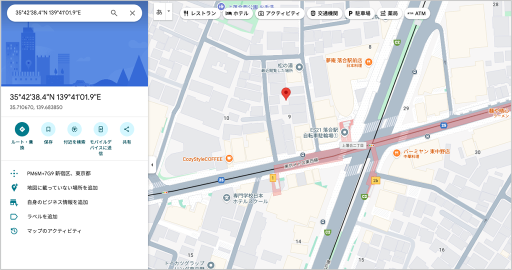 ということは、住所さえ正しければ、正しく場所を特定できるはずです。