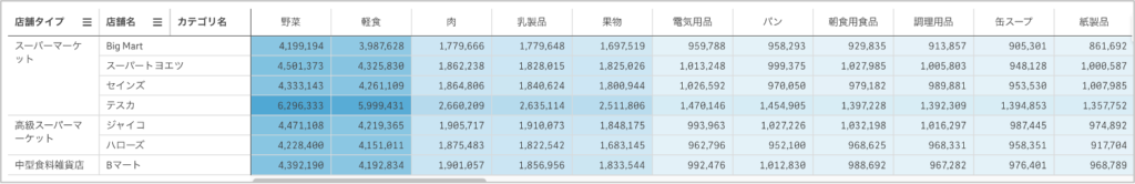 そして、ピボットの表示はこんな風に綺麗に表示されて、数値の大小が一目瞭然で把握できますよね。