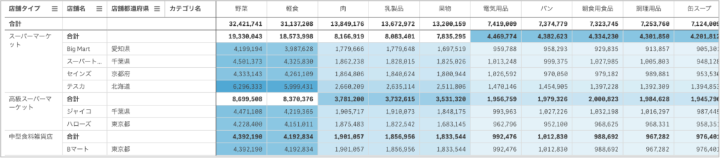 Qlikのピボットテーブルのヒートマップ表示をDimensionality関数で仕上げる