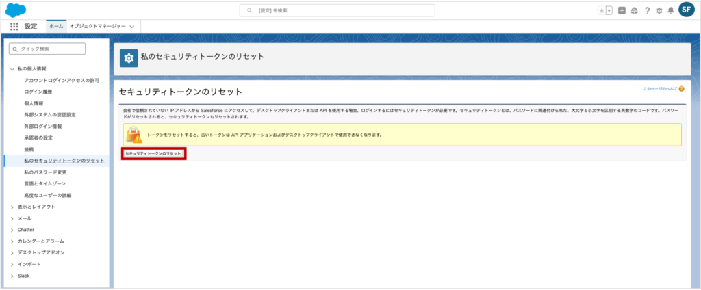 Salesforceのセキュリティトークンを入手する