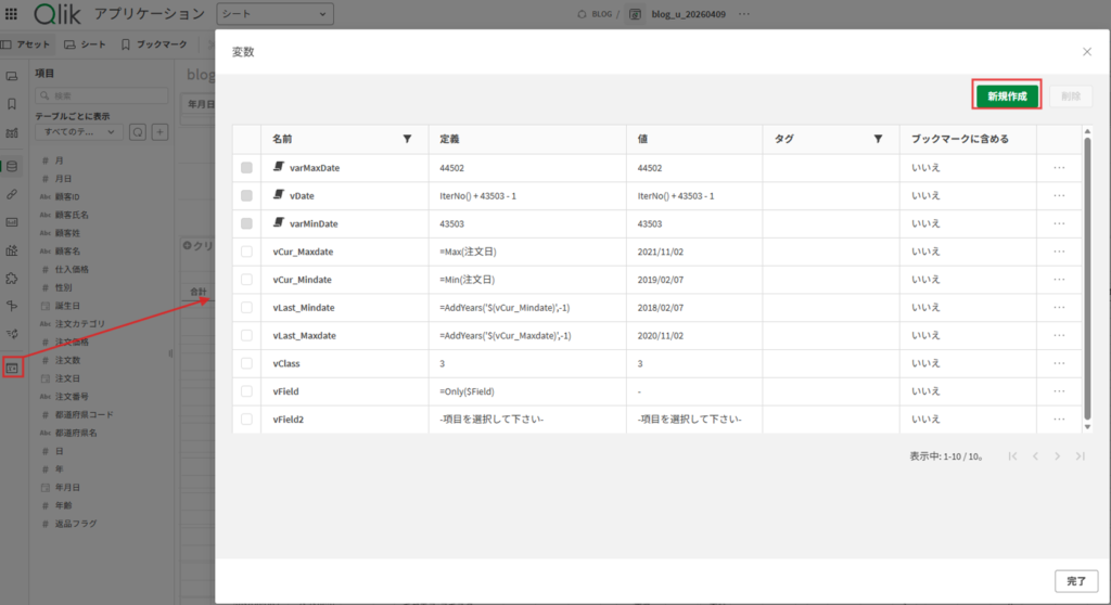 事前準備(Qlik変数作成)