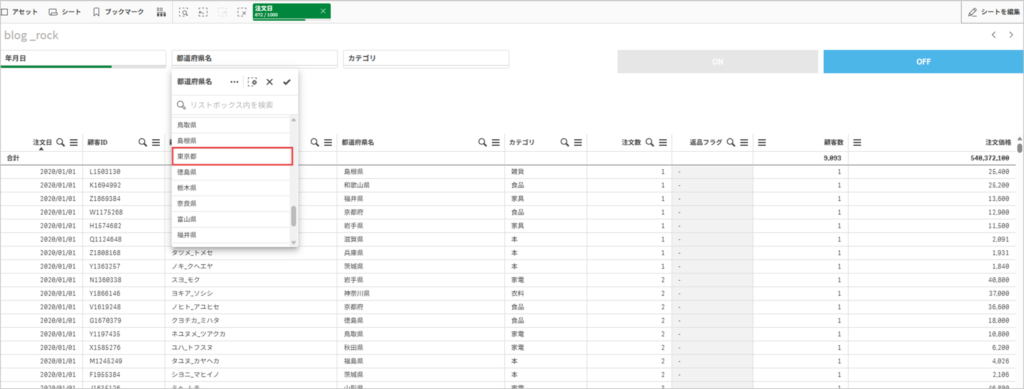 2020年以降で東京都からの注文で絞り込みます。