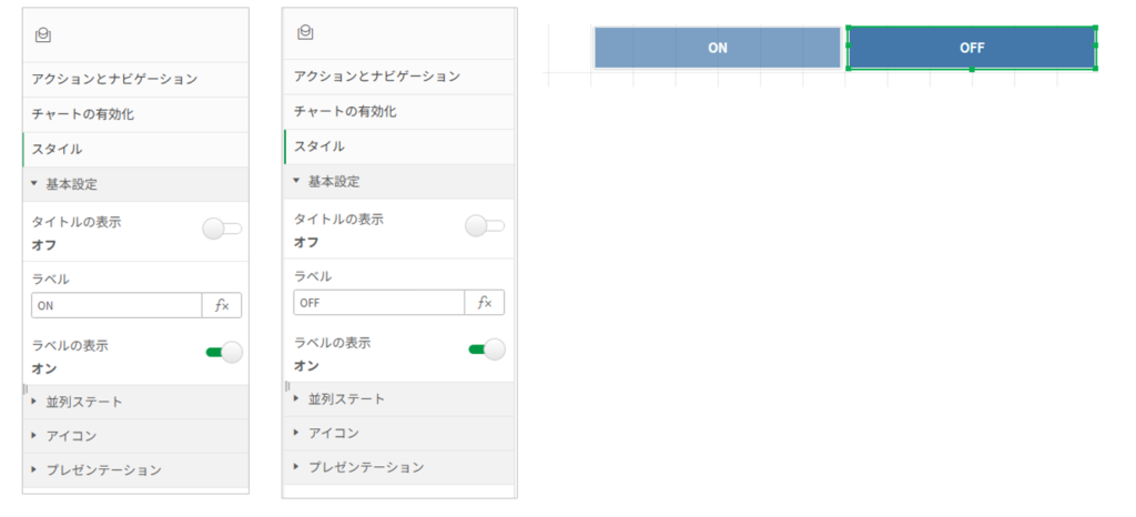 便宜上わかりやすくするために左ボタンをON右ボタンにOFFを表示します。