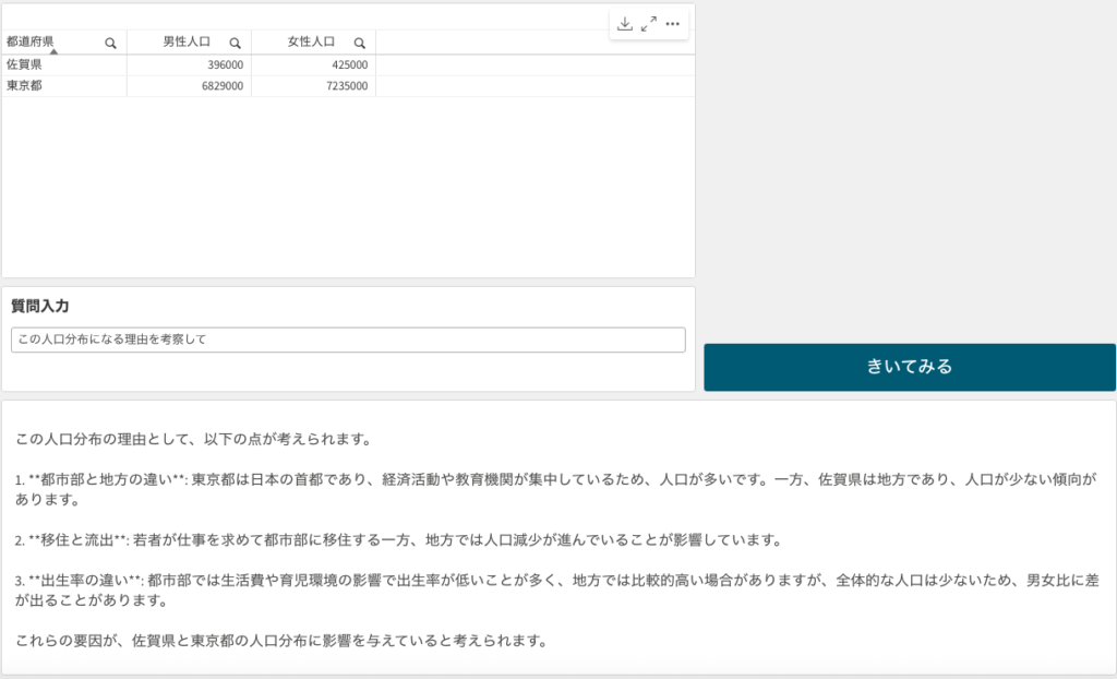 - 自然言語でデータ分析→ 「売上の特徴を教えて」と入力するだけで要約してくれる
