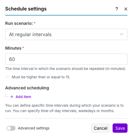手順⑤:Make.comで実行スケジュールを設定し、定期チェックを行う